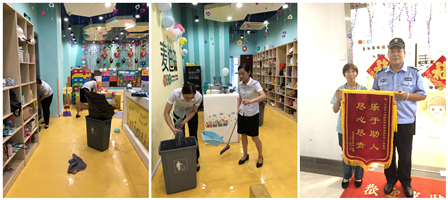8月29日保洁阿姨6点多就到了办公大楼,到三楼拿工具的时候,发现电梯旁边都是水,水如果流到电梯里,后果不堪设想。经过一番查看,原来是水管爆裂了,阿姨马上联系了秩序科当班的茅队长 ,茅队长第一时间联系了业主,让业主送来了钥匙,房间已经是水漫金山了,综服科、安保科、环境科全力以赴帮业主排水、拖地,经过三小时的努力,孩子们终于可以正常上课学习了。