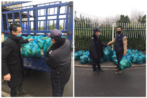 临近过年,一场突如其来的新型冠状病毒肺炎疫情袭来,全国上下万众一心,众志成城,为打赢这场没有硝烟的战争不断坚持着,努力着,奋斗着。随着疫情的发展,中塑新苑小区物业人和志愿者朋友已经在抗击新型冠状病毒肺炎疫情的第一线奋战多日。 俗话说得好:身体是革命的本钱。疫情期间,各项物资都比较紧缺,特别是百姓日常生活所必须的“菜篮子”。小区1-905业主有鉴于此,整合自己所拥有的资源,打算为一线工作者送去一份温暖和关怀。2月14号上午,一辆满载着新鲜蔬菜的汽车停在小区门口,几个带着口罩的工作人员将一袋袋新鲜蔬菜从车上搬了下来,物业人员将蔬菜一份一份发给大家。1-1103业主也为大家送来了早餐大饼。 “乐善有恒,大爱无疆”。总有这样一群人,他们乐于雪中送炭,他们敢于在危难中逆行,他们不求回报,只愿保一方平安。抗击疫情,你我同行。我们坚信,我们必将战胜疫情。