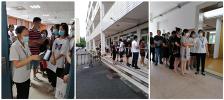 7月9至11日,在这炎热的天气,对我们来说真的是一种考验,东钱湖旅游学校喜迎2020级新生报到。因疫情原因,今年的新生报到,每个家长学生都必须进行测温、扫码并佩戴口罩,没有戴口罩的人员我们也暖心为其准备了备用口罩。来自五湖四海的莘莘学子在这几天陆续过来,为了迎接新的同学,校方要求我们物业人员一起配合新生报到工作,为了确保新生报到顺利进行,我们对各个环节进行了细致周到地安排部署,工作中熟练操作,减少了许多不必要的麻烦。