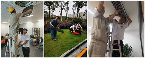 根据方案各科室分工操作,宣传、登记、拆装、清洗各负其责。在活动第一天,管理处工作人员对已报名登记的业主办公室开始清洗。随后打电话和微信询问的业主、租户络绎不绝,我们先做好房号登记,然后与业主预约时间,安排师傅上门进行清洗。工作人员与负责清洗的师傅一起动手,认真地为每一位业主清洗过滤网,并在晒干之后为业主装好。同时进行宣传还告知业主们如何保养空调节约能耗。建设集团办公室王主任赞叹道:“你们新上海国际物业是当之无愧的贴心管家啊!帮我们解决了清洗过滤网的烦恼。”听了业主们的表扬,大家心里乐开了花。