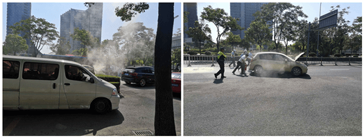 财税大厦管理处:突发汽车自燃,保安挺身而出
