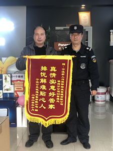 事情还要回顾到10月30日晚上,刘总自己忙着卸货,匆匆忙忙地把十对音响落在了店门口,等第二天才发现自己价值2000多的音响不见了,马上联系了秩序维护科的队长,秩序科的队员热情相助,一边安抚刘总,一边调监控,午饭都顾不上,几经周折终于帮业主找到了音响。刘总夸赞:“你们真是排忧解难的贴心人。”