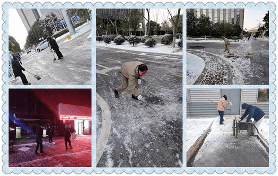 12月29日,芜湖市突然降温,随后普降大雪,一夜之间“忽如一夜春风来,千树万树梨花开”。园区、厂区道路积雪、结冰,为尽快消除积雪给内部道路带来的诸多不便,保障各业主单位正常出行,30日清晨芜湖分公司各项目处负责人组织员工积极铲雪除冰。洒工业盐,用铁锹铲,用扫帚扫,用小车拖,各科室员工不畏严寒,分片分工铲雪,在最短的时间内铲出一条条干净的道路。截止30日早上8时左右,园区、厂区主干道已基本除冰完毕,车辆、行人正常通行。